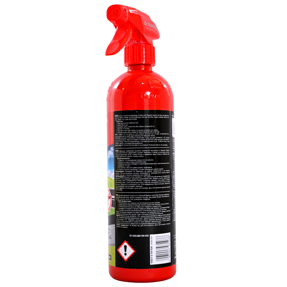 مزيل الحشرات والقطران من دكتور ماركس هو سائل فعال يستخدم على جسم السيارة ونوافذها للتعامل مع فضلات الطيور أو بقايا القطران . كونها آمنة لطلاء السيارات أو البلاستيك أو الزجاج ، يمكن استخدامها على أي جزء من جسم السيارة. سهل التطبيق بفضل الفوهة الخاصة
