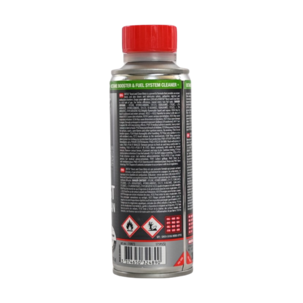 MOTUL BOOST AND CLEAN MOTO عبارة عن مادة مضافة للبنزين متوافقة مع أنواع الوقود E10 (الإيثانول 10٪).